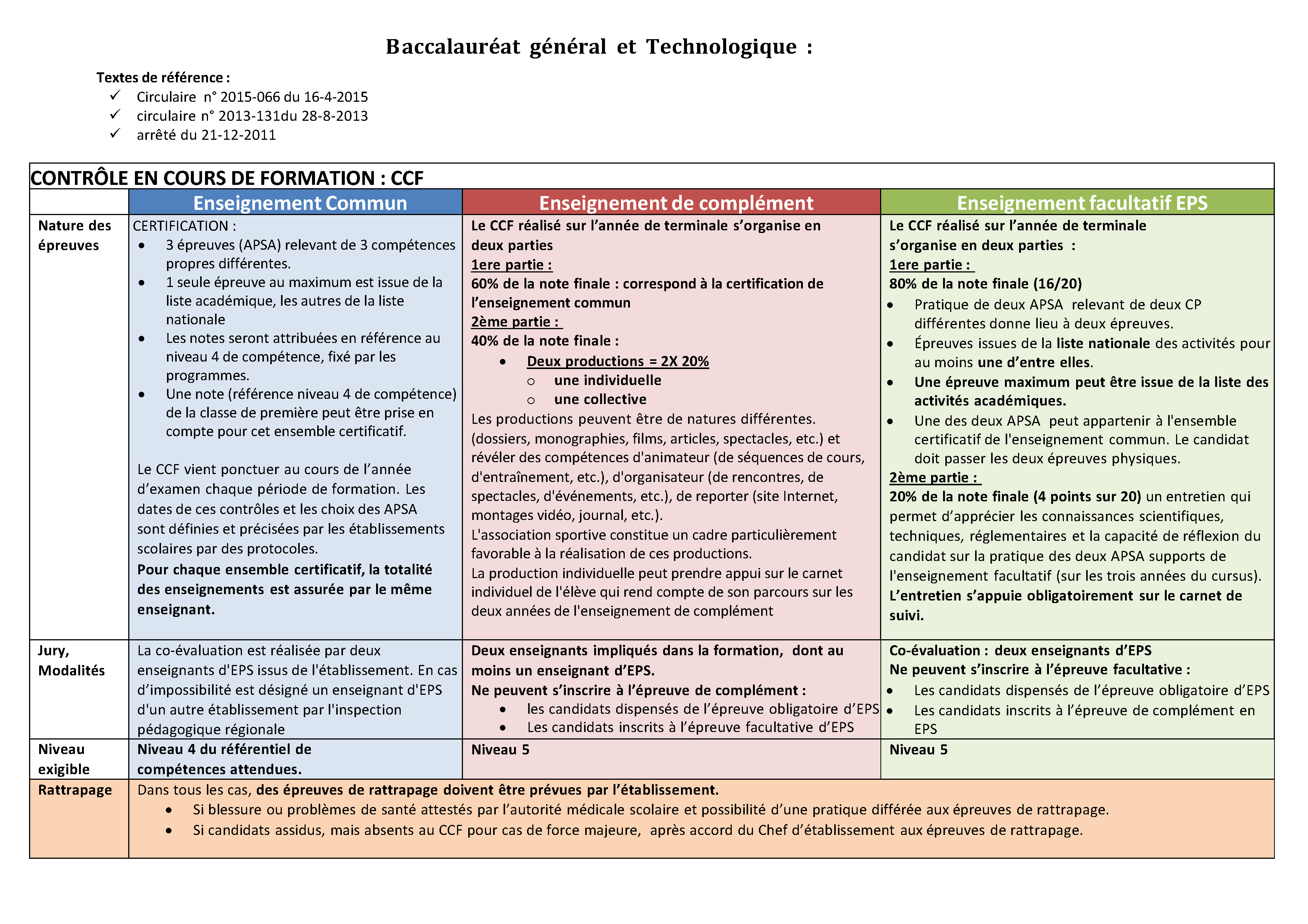 Examen de l’enseignement commun en contrôle ponctuel terminal